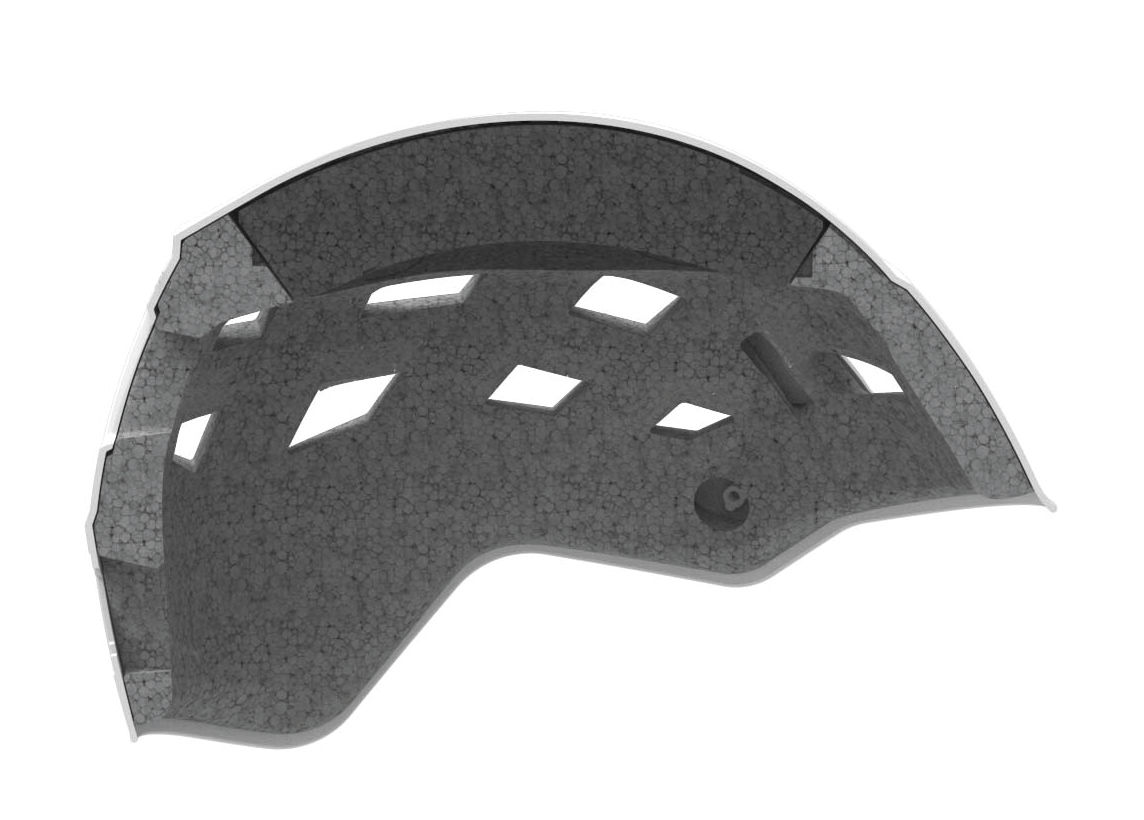 - Material(s): ABS shell, expanded polypropylene (EPP) liner, expanded polystyrene (EPS) liner, polyester webbing