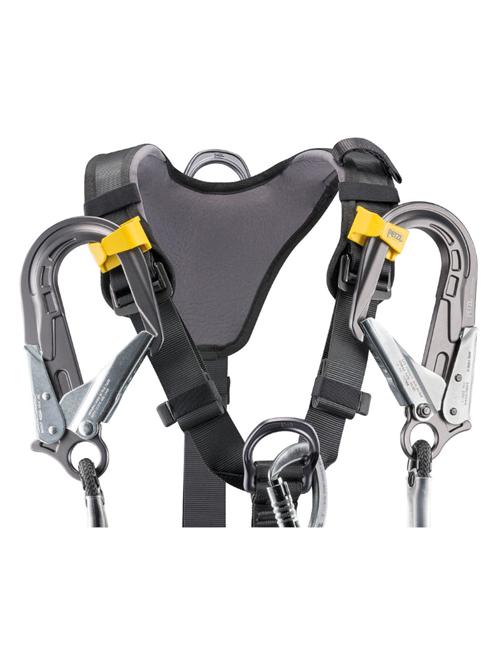 – Shoulder straps are equipped with a parking system for fall-arrest lanyard connectors, keeping the lanyard out of the user’s way and the connectors within reach