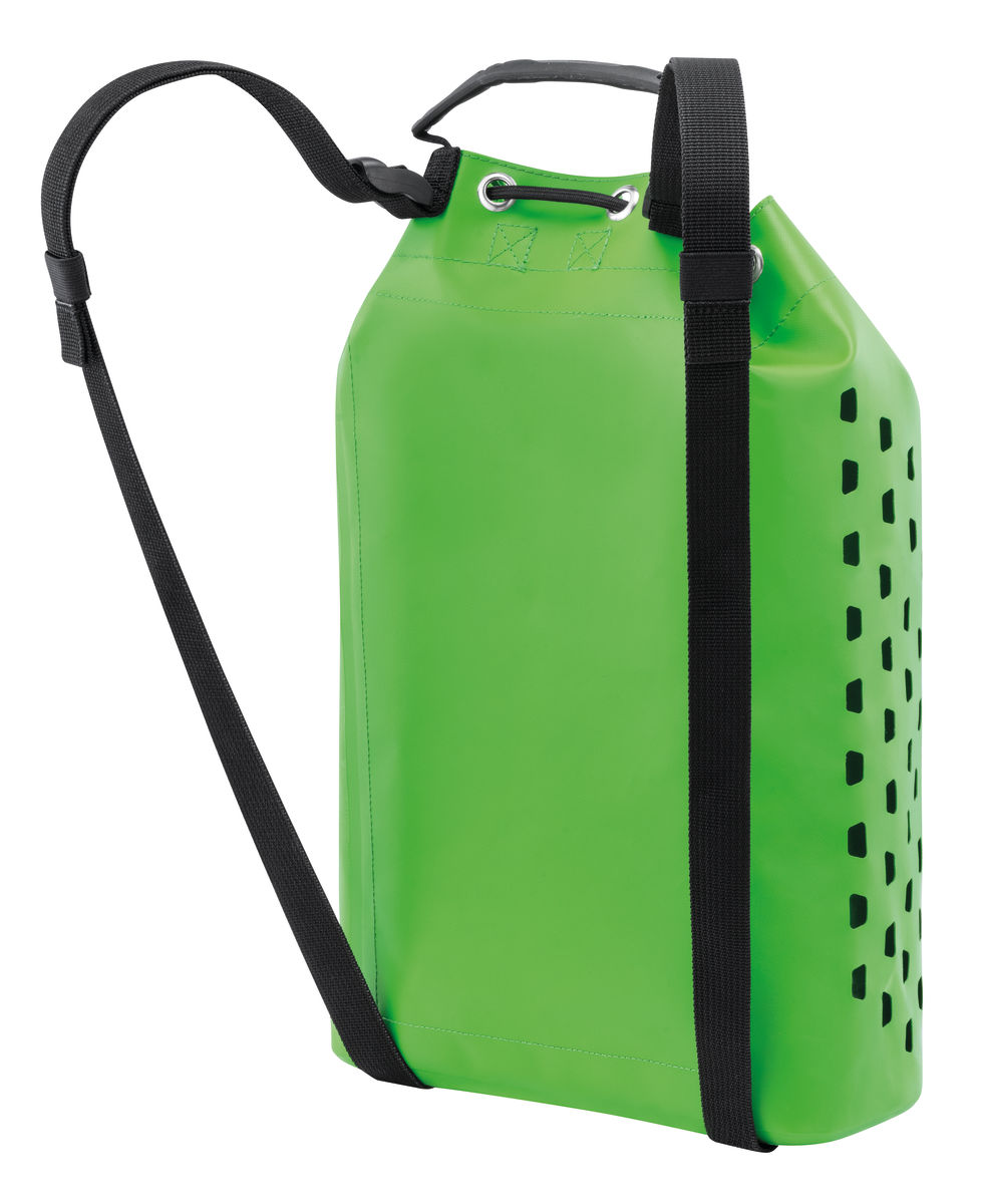 YARA CLUB 15 is a small-capacity canyoning rope bag designed for groups. It can transport a rope, keep it from tangling with other equipment, and facilitate maneuvers at the anchor or when installing a fixed line. The padded back provides buoyancy and two handles improve handling. Multiple drain holes optimize water evacuation. Its construction and reinforced upper handle provide additional durability.